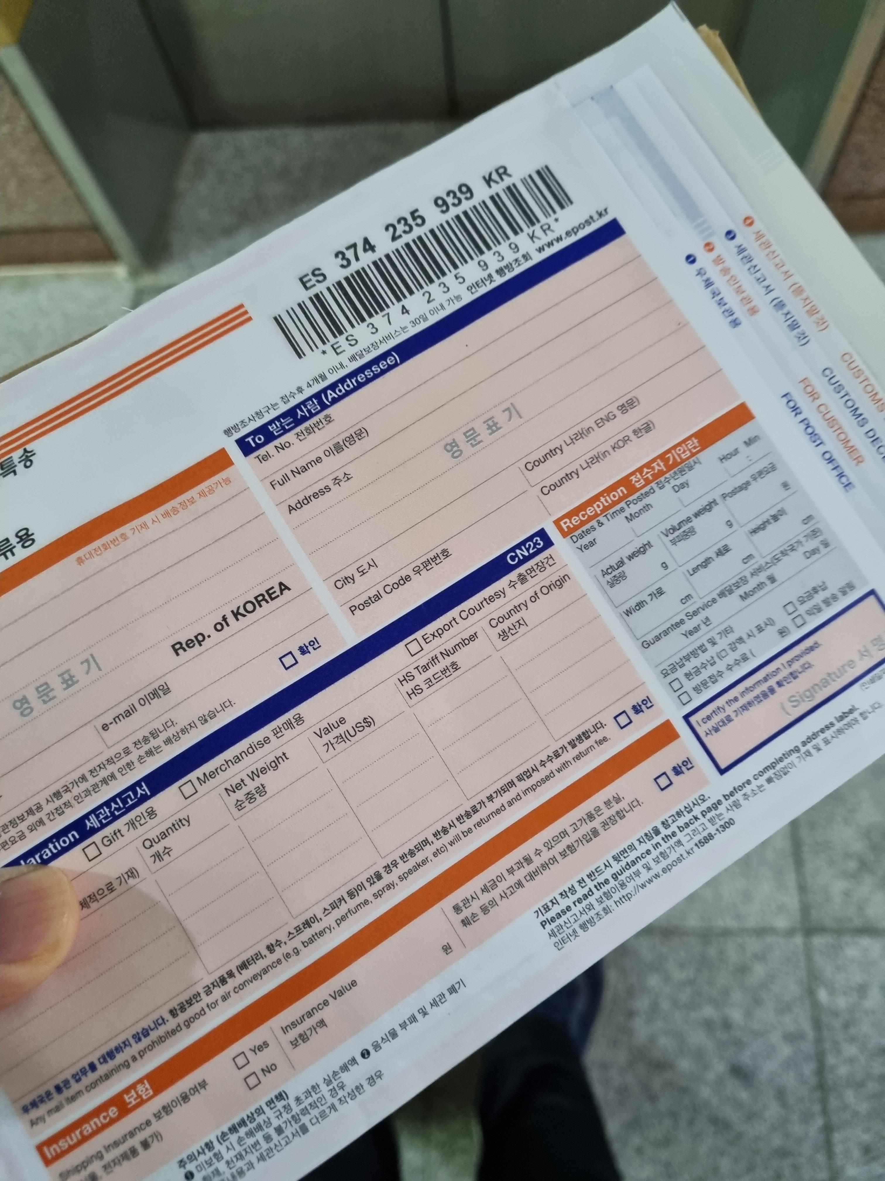 (인터넷 우체국에서 사전 신청을 하자.. 영어로 송장에 직접 주소 쓰기 빡시다..)