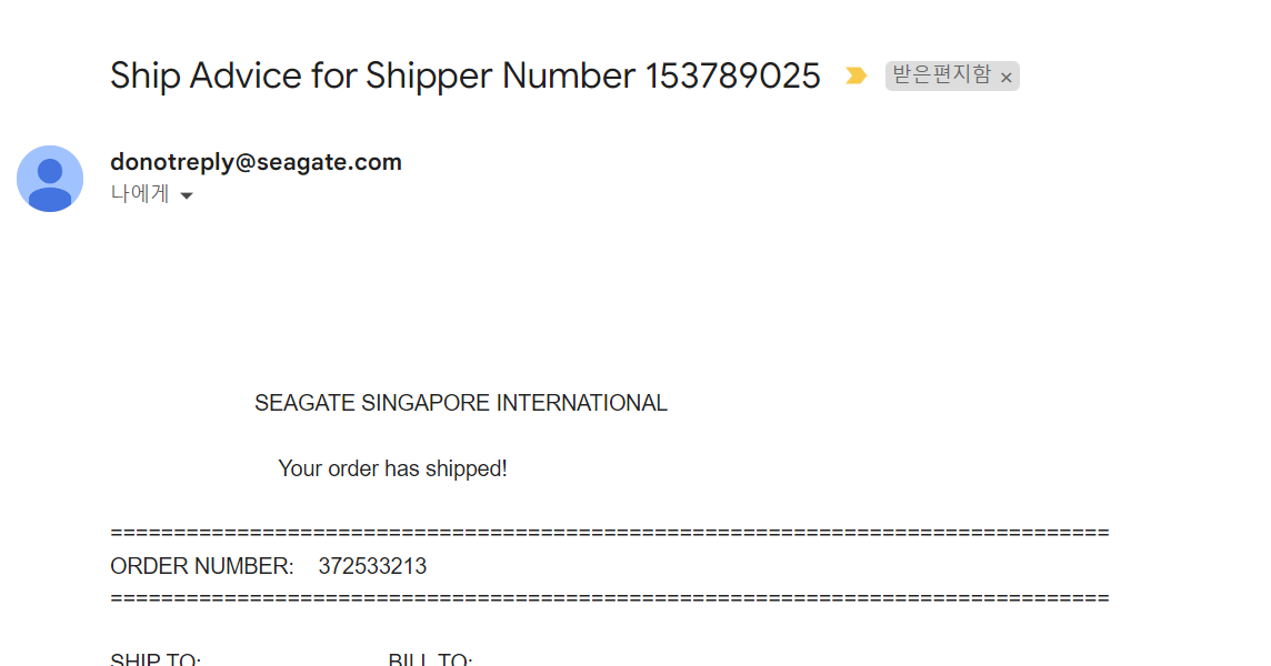 메일로 필요한 내용을 보내면 RMA 넘버 및 RMA 를 보내야하는 해외 시게이트 대응하는곳의 주소가 답장으로 온다.