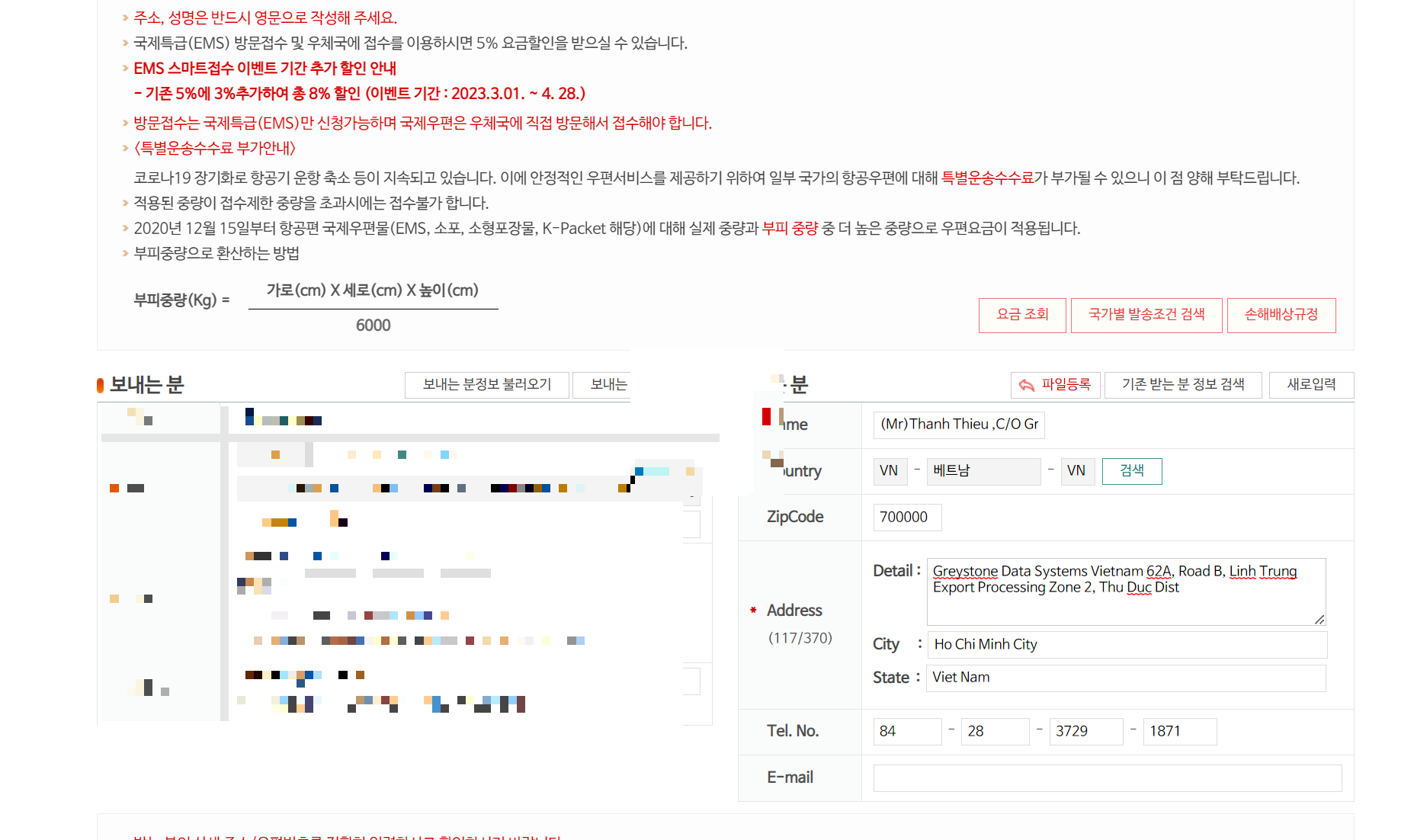박스겉면에 RMA 넘버 써 놓고 우체국 EMS로 보내면 2만원정도가 든다.. 베트남 쪽으로 보내는 거라.. 송장에 직접 쓰지말고 인터넷 우체국에서 사전 신청을 해놓고 가자.. 손으로 베트남 영문 주소 쓰려니까 못쓰겠더라.. (일반 소포로 보내면 15000원정도인데 반송되면 추가 요금이 들어서 EMS로 보냄...)